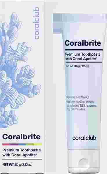 Zubná pasta Coralbrite s hydroxyapatitom na báze fosílnych koralov pomáha udržiavať zubnú sklovinu zdravú a chráni pred zubným kazom. Zlepšuje procesy remineralizácie zubnej skloviny, rozjasňuje ju, znižuje citlivosť zubov. 99,7% prírodných zložiek.