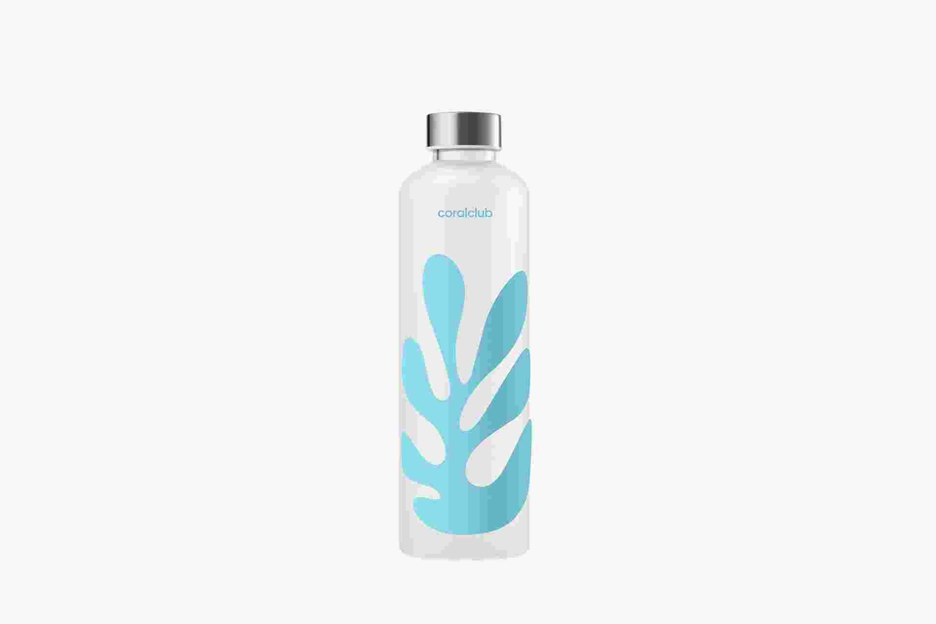 Fľaša na vodu z borosilikátového skla vytvorená špeciálne k 25. výročiu Coral Clubu.